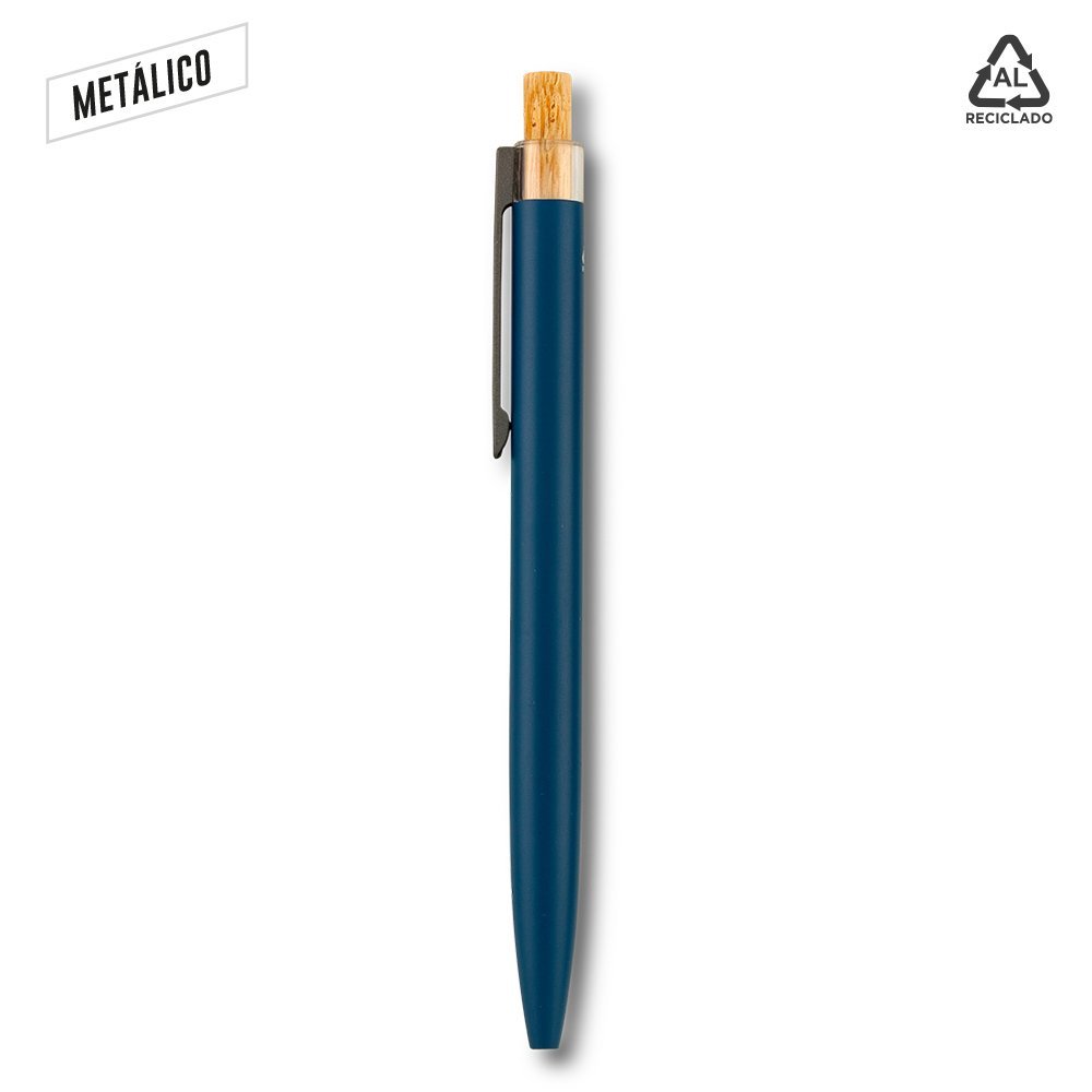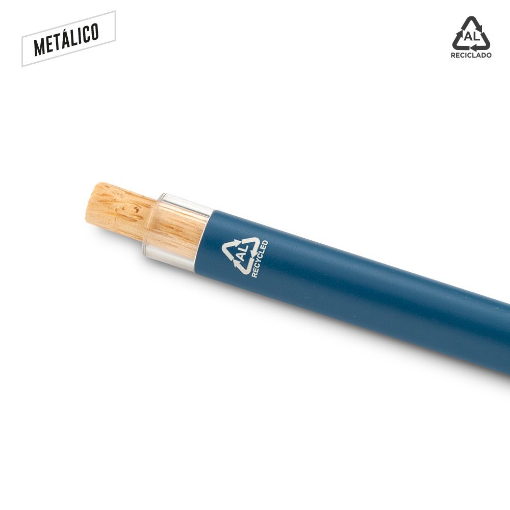 Bolígrafo en aluminio reciclado. Con partes en plástico y bambú. Mecanismo push.