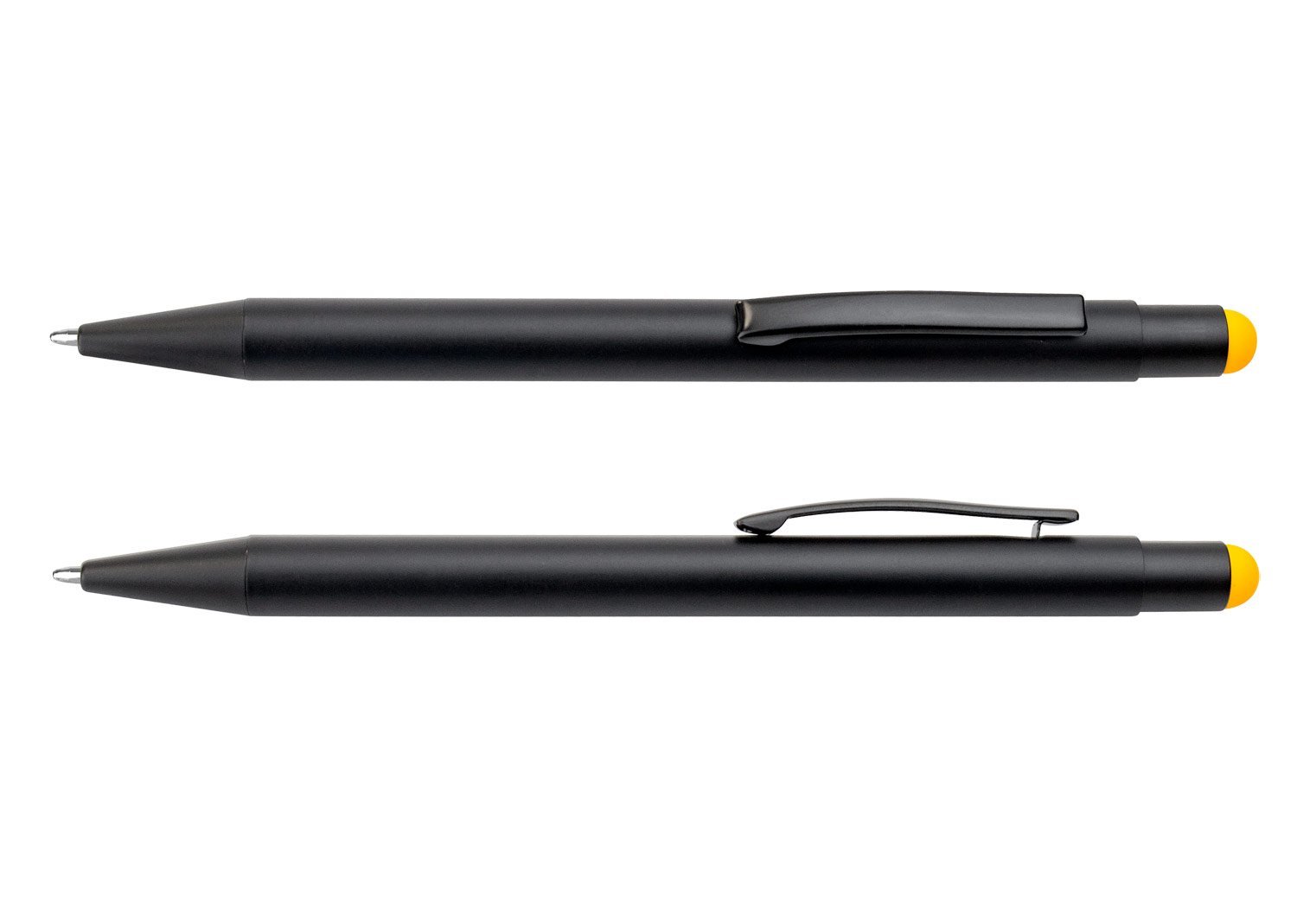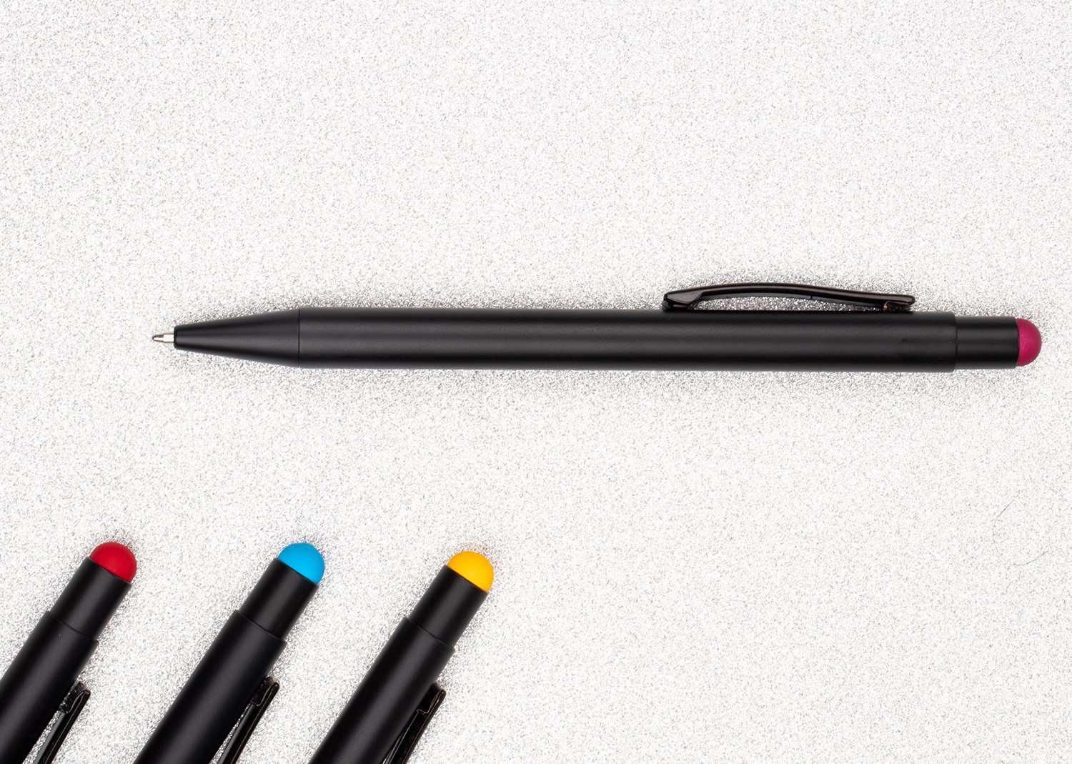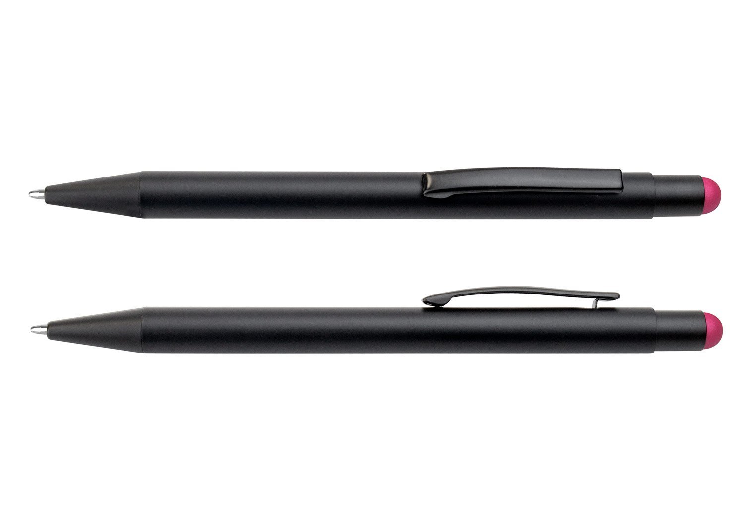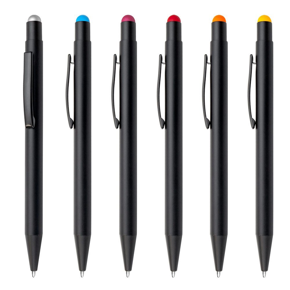 Bolígrafo Aluminio con sistema de apertura retráctil, touch en la parte superior, al realizar la marca la mostrara en el mismo color del touch, (se sugiere con laser fibra y debe calibrarse la maquina)