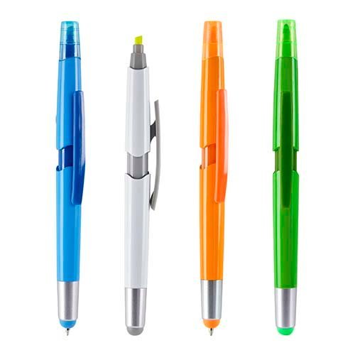 Bolígrafo con touch screen y marcatexto. Mecanismo pulsador.