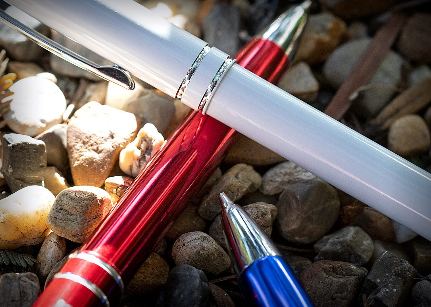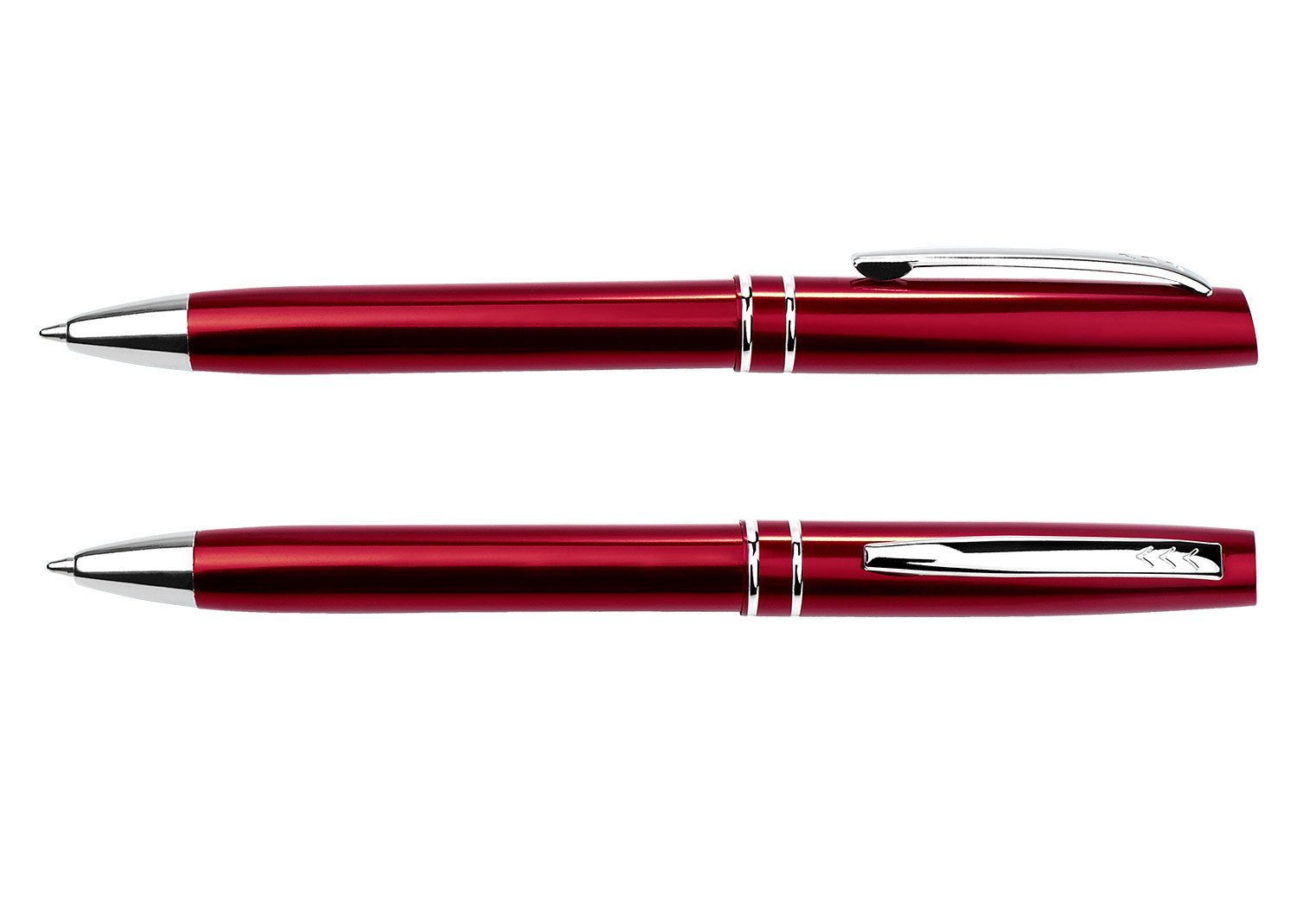 Bolígrafo en Aluminio color metalizado, sistema de apertura retráctil. Diseño con anillos metalizados en la mitad.