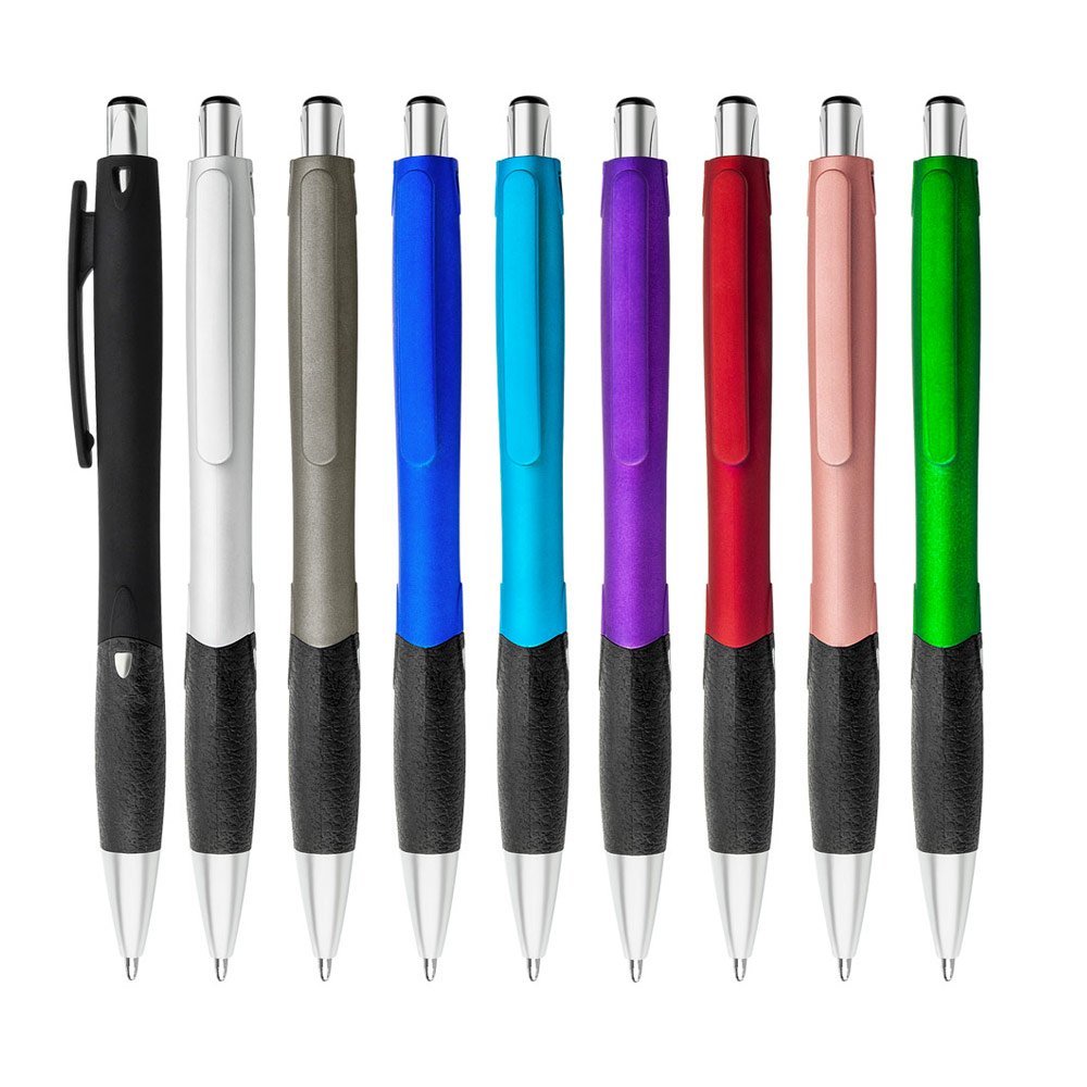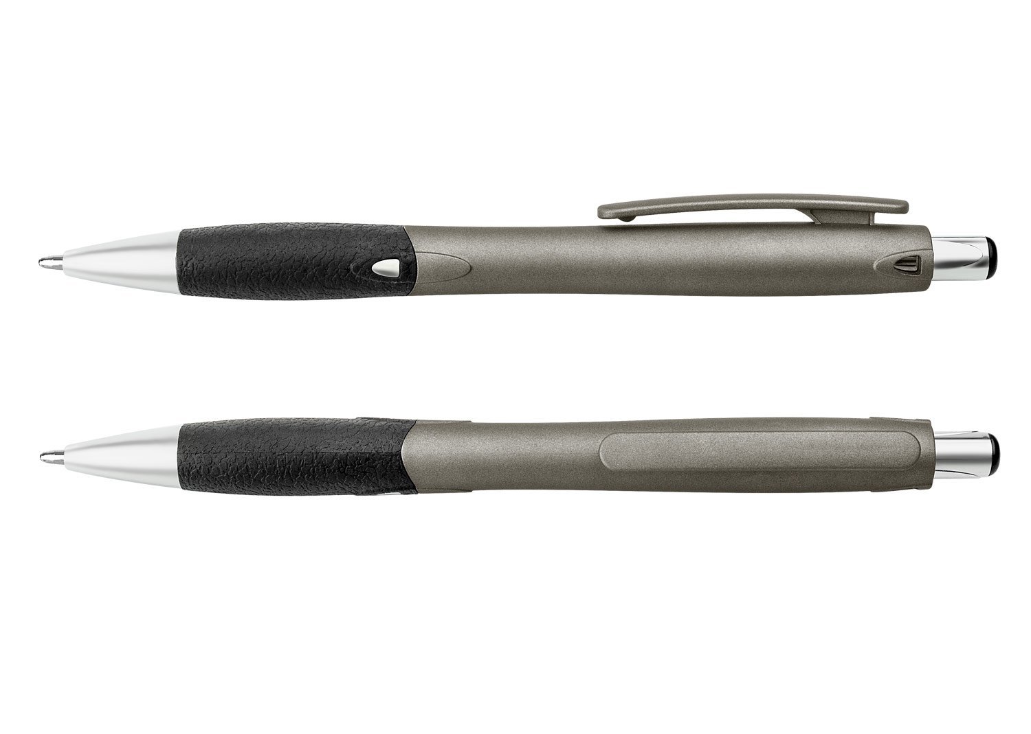 Bolígrafo plástico con sistema retráctil con grip en caucho