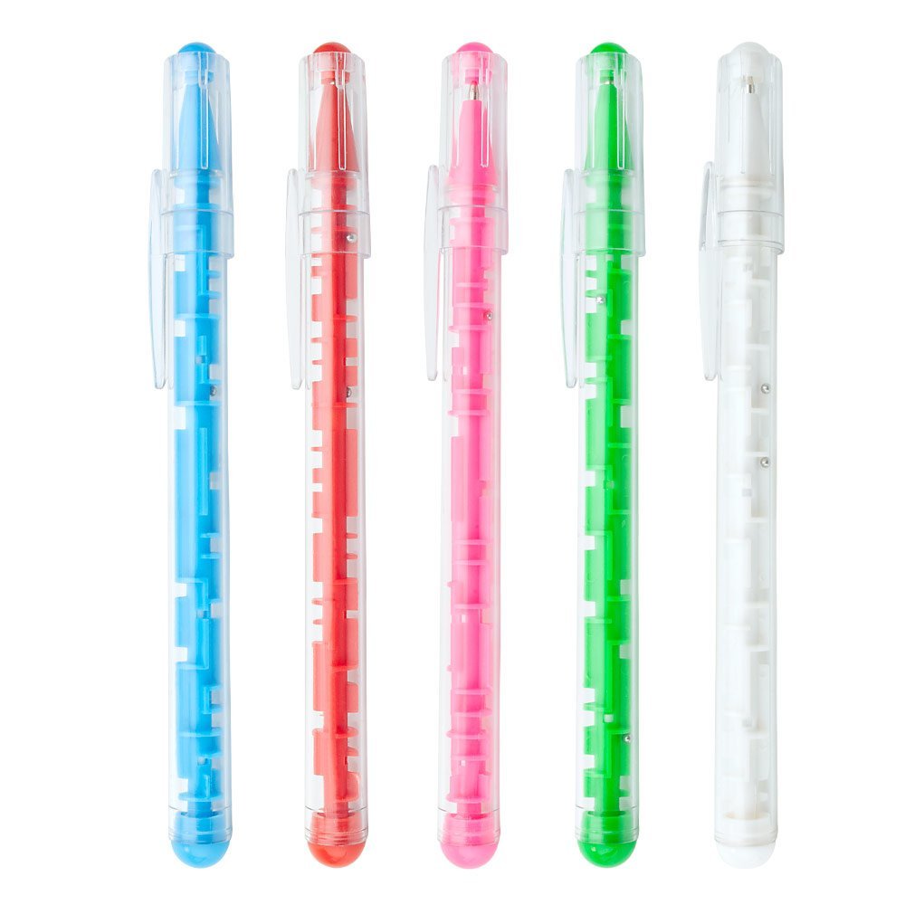 Bolígrafo plástico con tapa, en la parte interna tiene un jueego para disfrutar mientras se utiliza