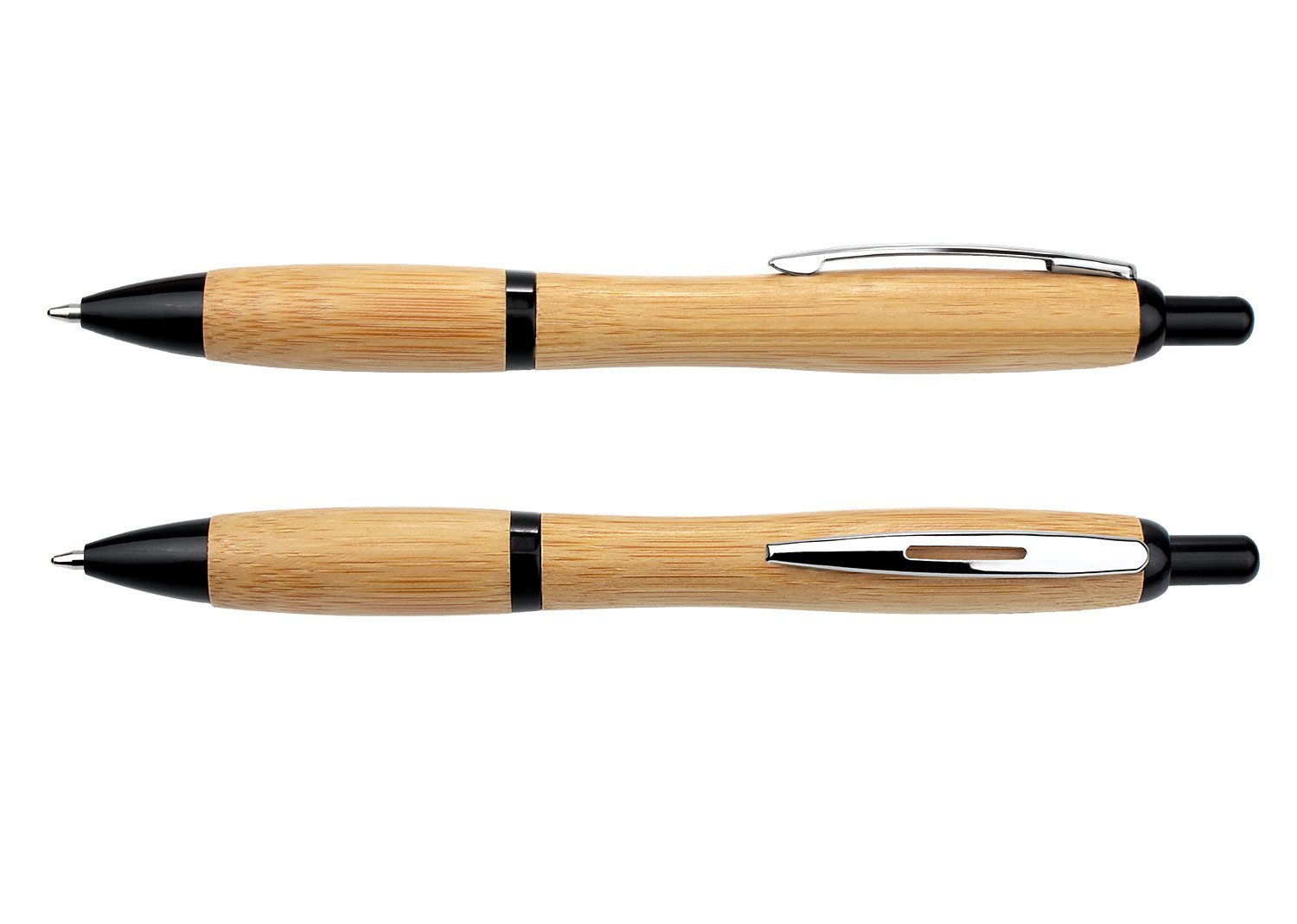 Bolígrafo ecológico en bambú con sistema de apertura retráctil. Clip Metálico