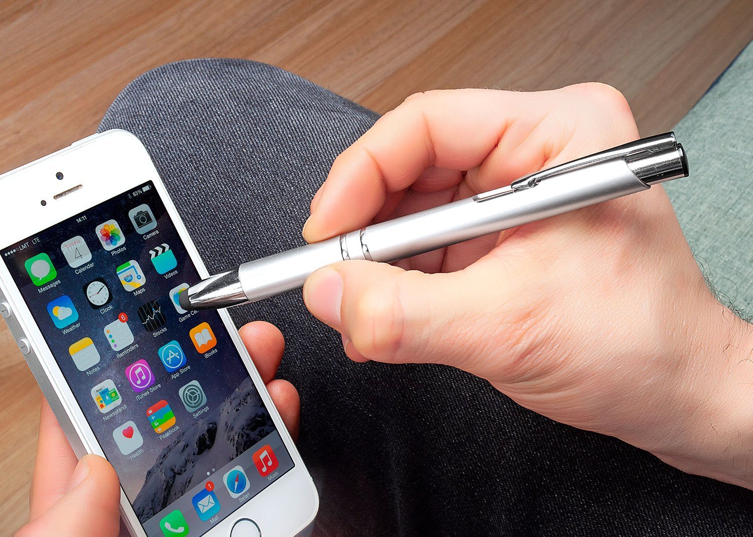 Bolígrafo retráctil con Touch en la punta para pantallas táctiles.