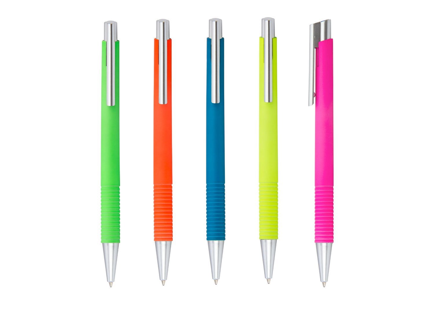Bolígrafo plástico sistema retráctil y acabado neón.