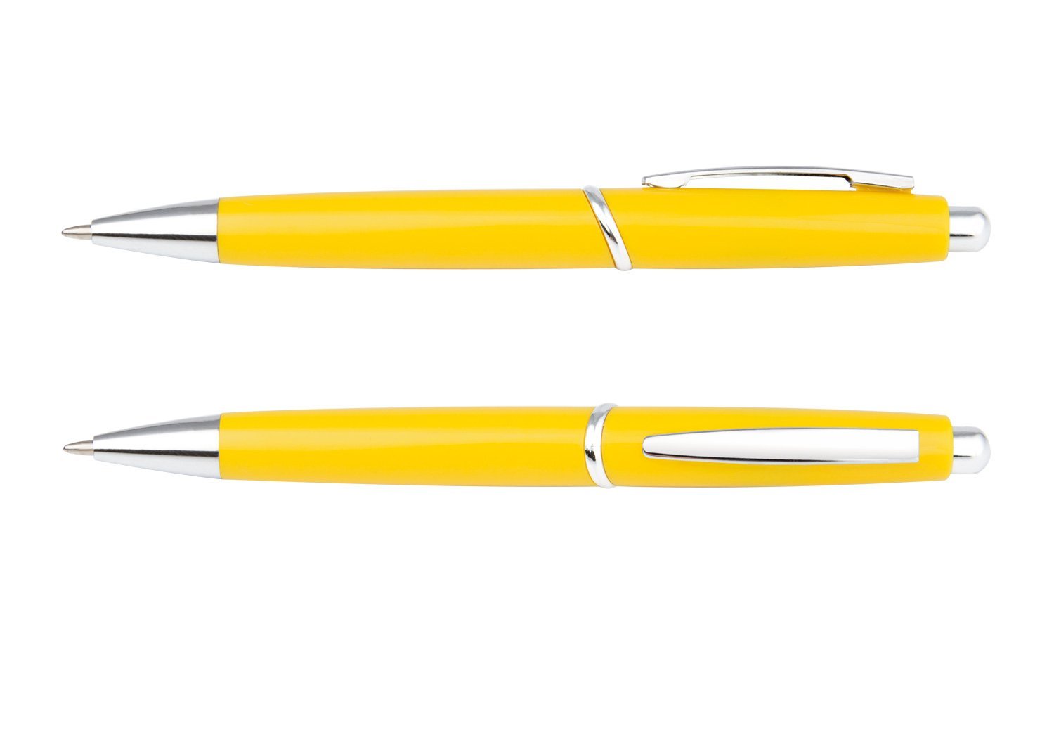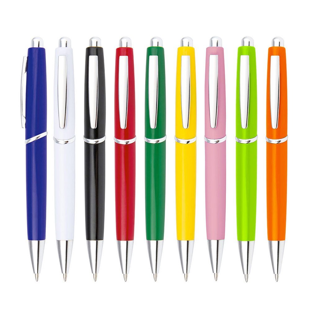 Bolígrafo con sistema retráctil en la parte superior. Con clip metálico.