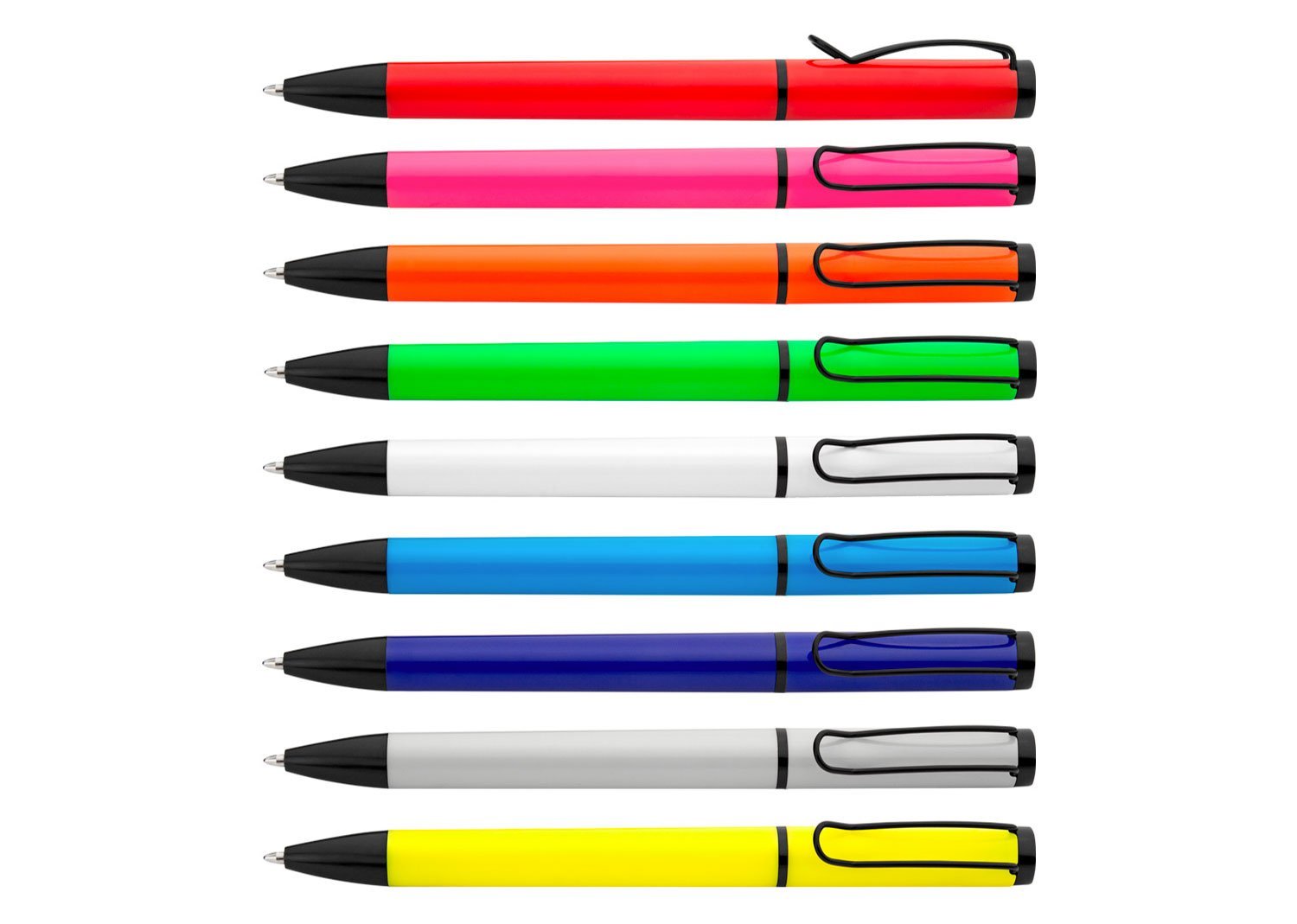Bolígrafo de color sólido, punta y clip de color negro. Sistema de apertura Twist.