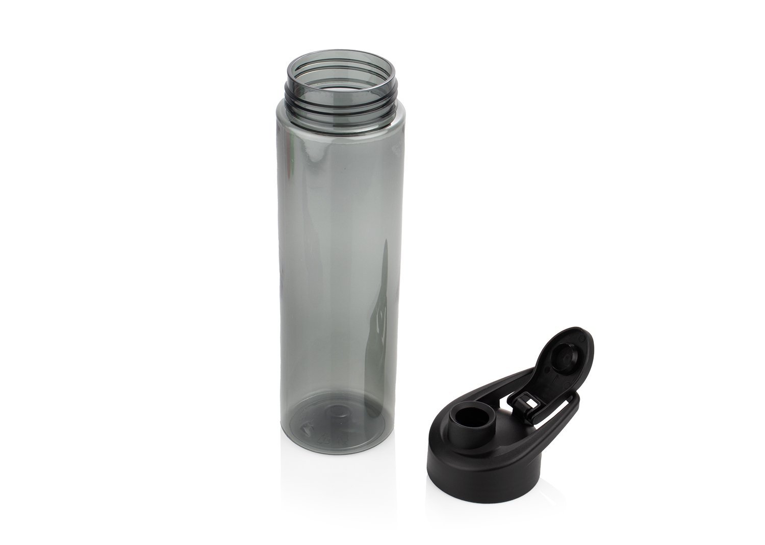 Botella deportiva con tapa a presión y agarradera para transportar fácil. Capacidad de 600ml.