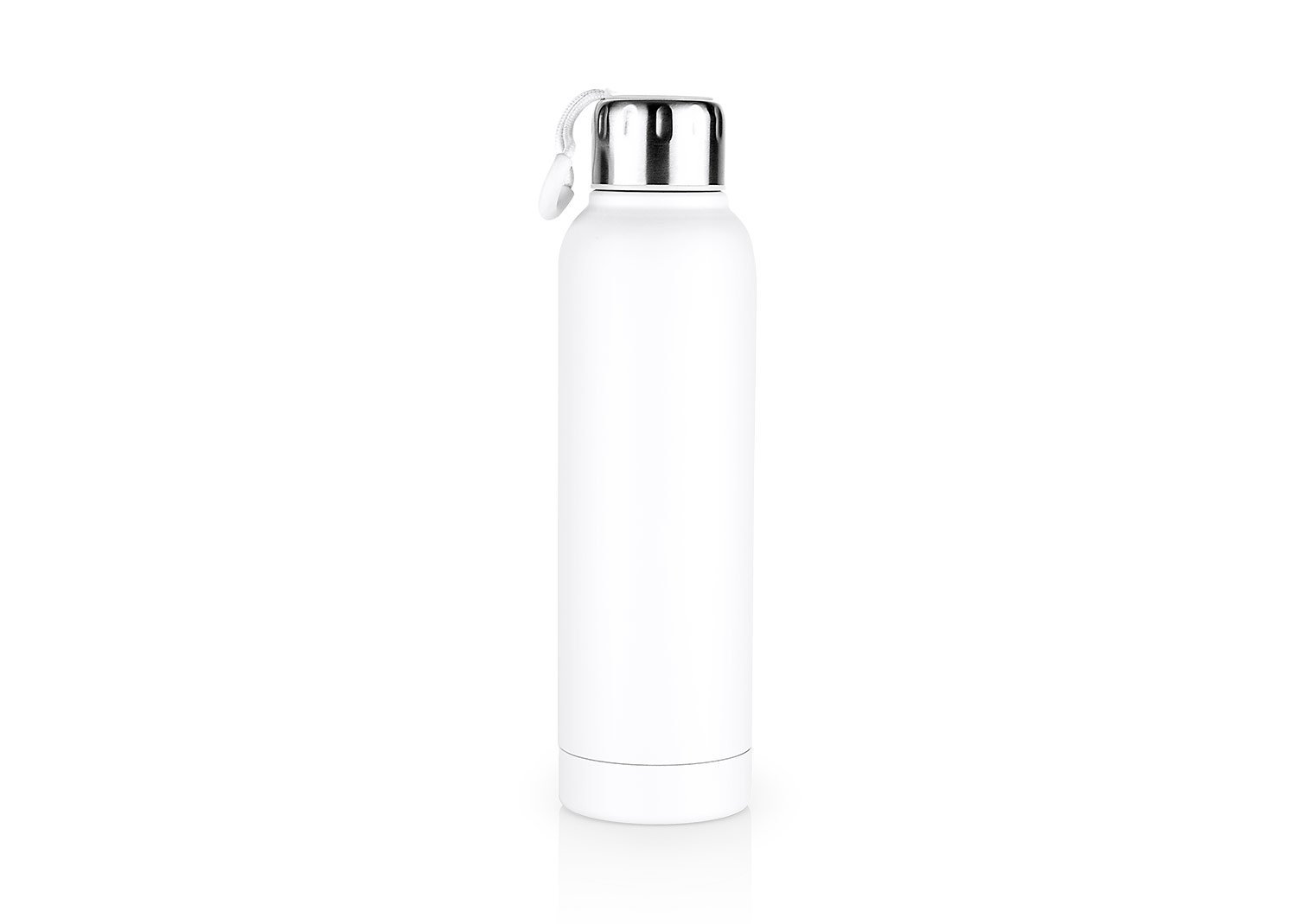 Botella en acero inoxidable de 600 ml / 20 Oz, tapa rosca y cordón para transportar fácilmente.