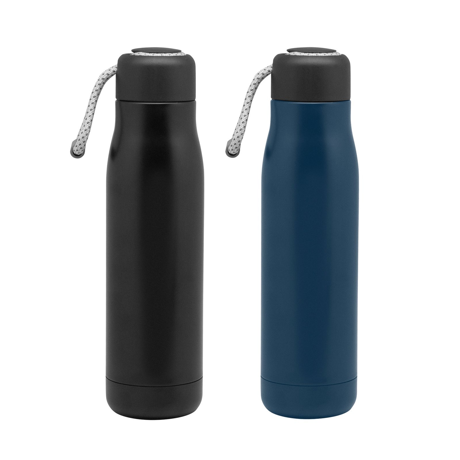 7cm x 25.5 cm. Capacidad 500 ml. Acero inoxidable. Botella con aislamiento térmico vacuum. Interior de acero 304 y exterior de acero 201. Tapa plástica PP + Anillo de silicona antiderrame. Posee además tira de color gris de 12 cm de largo. Ideal para llevarla a todos lados. Mantiene hasta 12 hs la temperatura de las bebidas calientes y 24 hs de las bebidas frías. Presentación en caja de regalo Kraft.