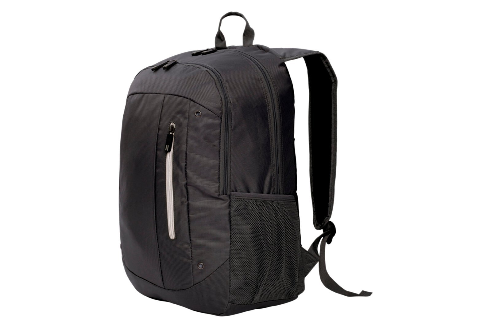 32 x 47 x 17 cm. Capacidad 25 litros aprox. Jacquard Poliéster 420D. Morral portanotebook. Dos compartimentos con cierre. Compartimento principal con división acolchada porta notebook de hasta 15” con bolsillo y el segundo con tres espacios contenedores. Bolsillo frontal con cierre en color y dos bolsillos de red laterales. Cierres metálicos con tiradores de goma con detalles de color. Correas regulables y espalda acolchadas.