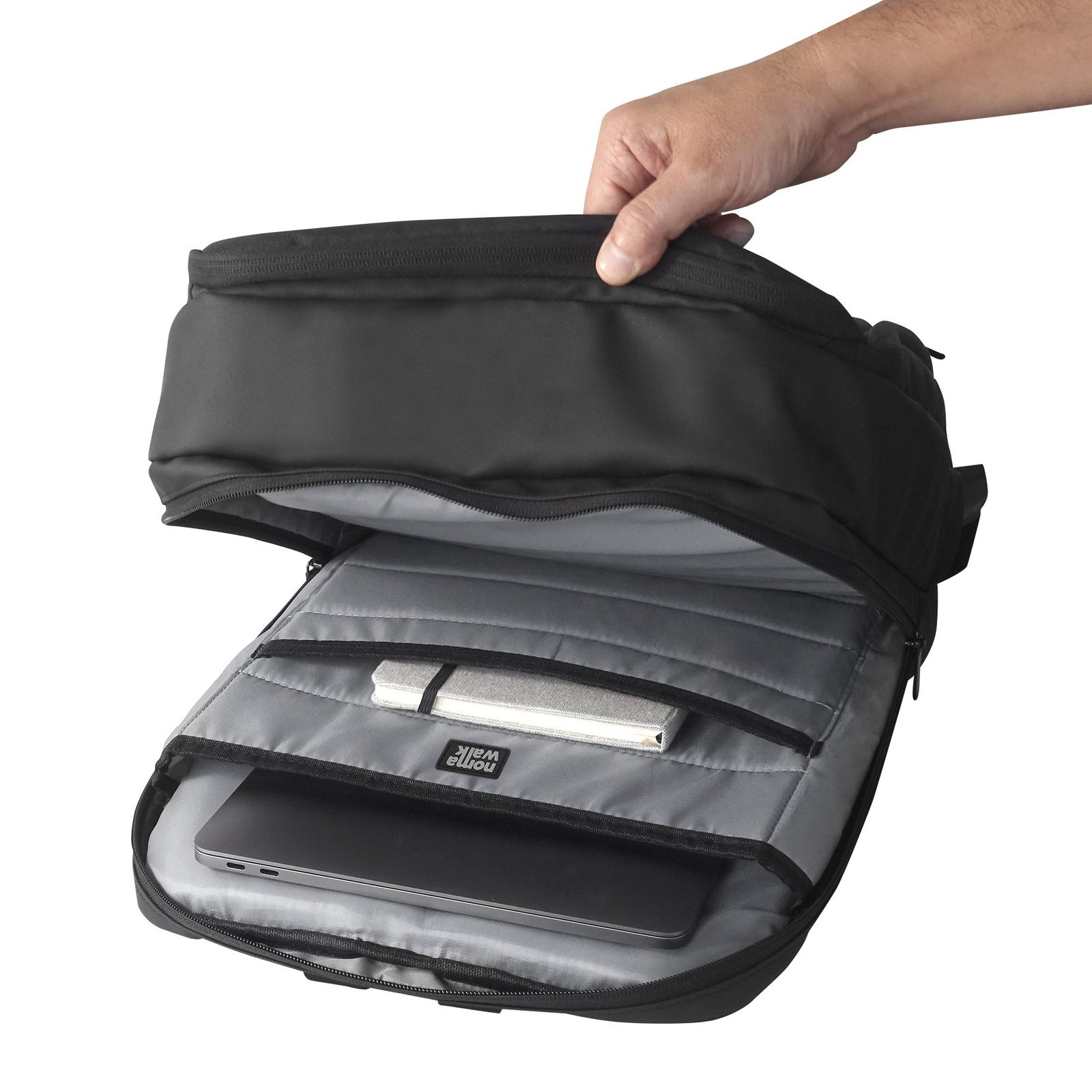 31 x 42 x 15 cm. Capacidad 17 litros. Poliéster 300D. Mochila Portanotebook de 14 «. Compartimento con espacio para notebook, bolsillo para tablet. En el frente bolsillo con cierre y detalles en PU. Espalda acolchada con red que permite ventilación y cuenta también con 1 bolsillo de seguridad con cierre. Correas acolchadas y cierres metálicos. Todo el contorno del morral y las correas, están forradas en poliéster recubierto con una película de PU. Presencia de marca en una de sus correas y en el interior.