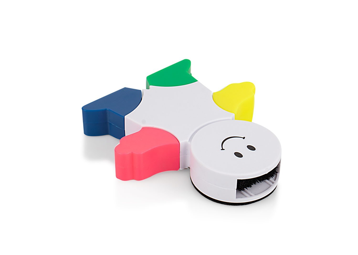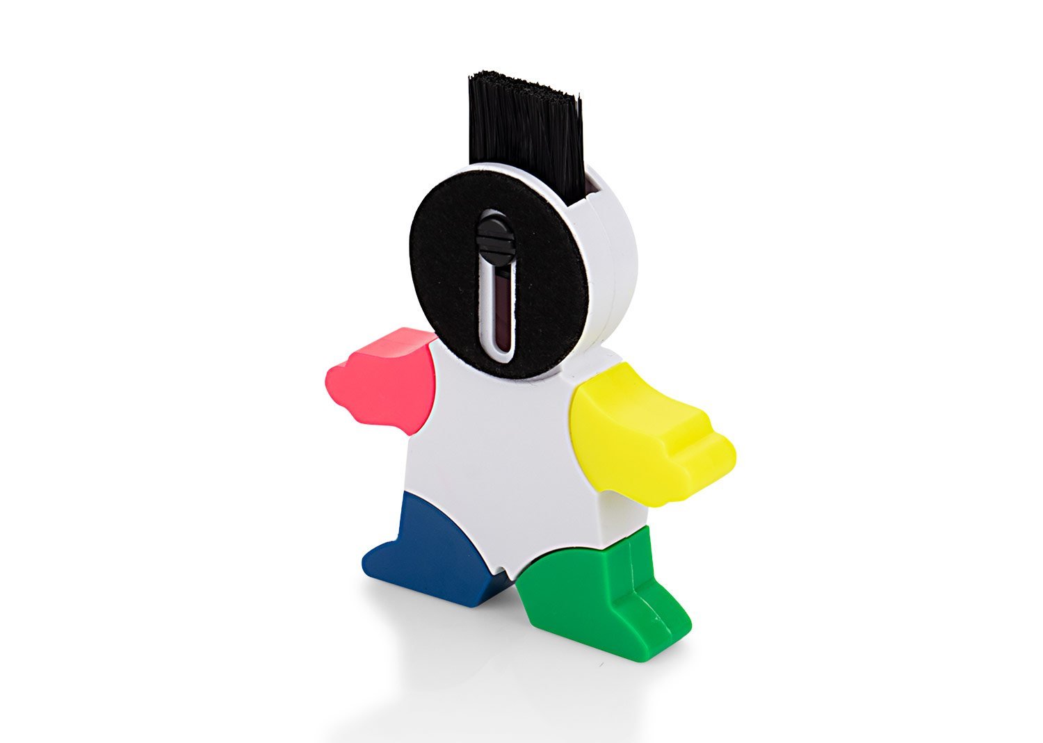 Juego de 4 resaltadores de colores con base en forma de niño y cepillo para limpiar el teclado.