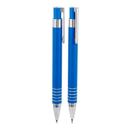 Bolígrafo y lapicera 0.5 mm. Mecanismo pulsador. Incluye estuche metálico.