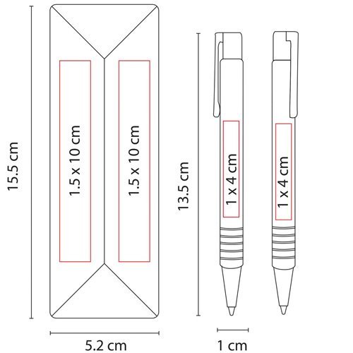 | TAMAÑO: | 1 x 13.5 cm Bolígrafo / 5.2 x 15.5 cm Estuche |