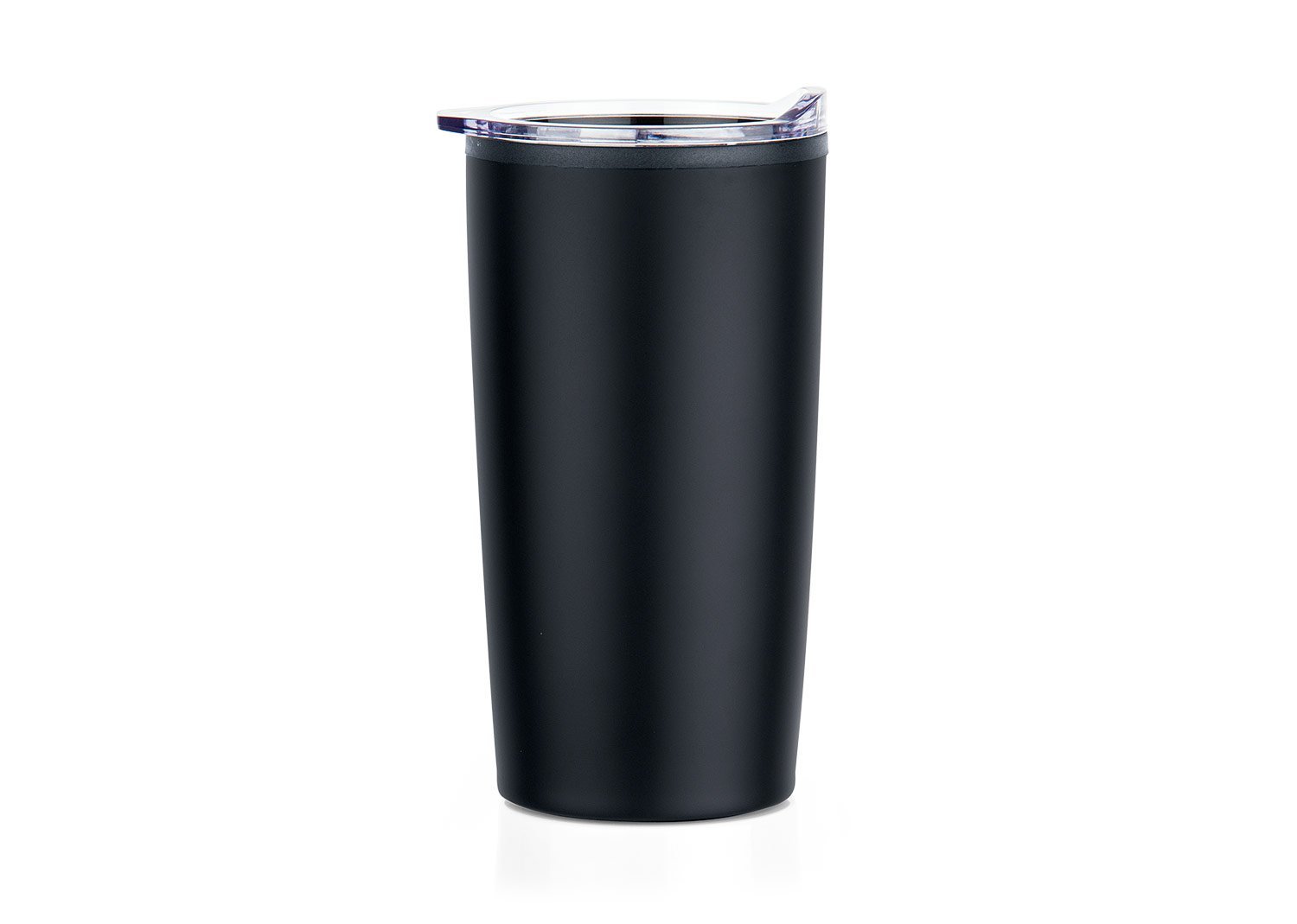 Vaso de doble pared con recubrimiento interior en PP y tapa plástica con cierre corredizo. Capacidad: 600ml, peso: 220g. Temperatura recomendada de ≤60 °C.