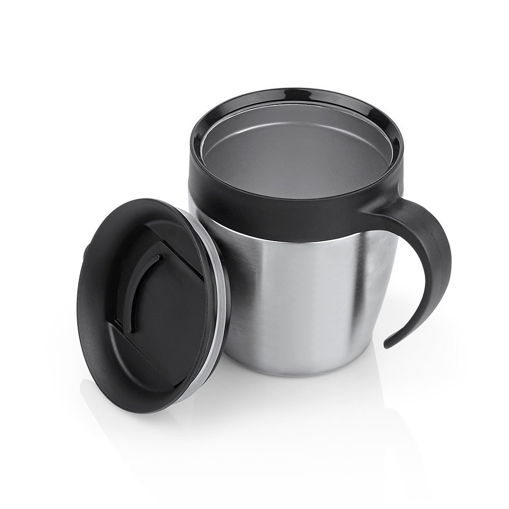 Mug doble pared en Acero inoxidable con tapa. Capacidad 350ml / 12 Oz.